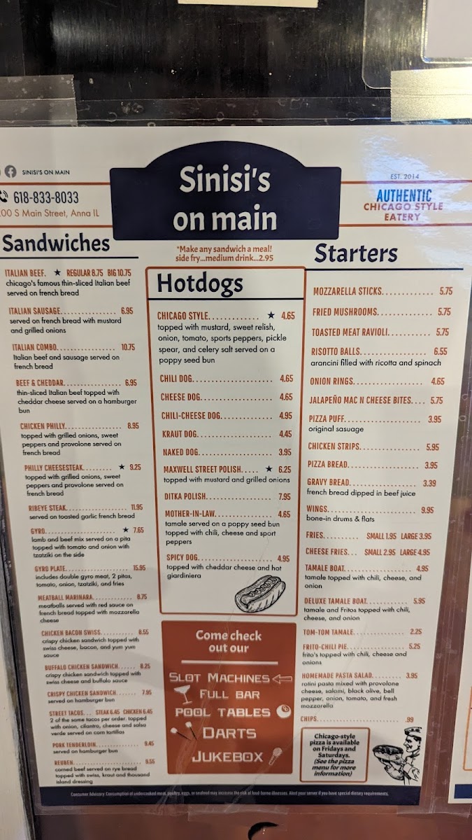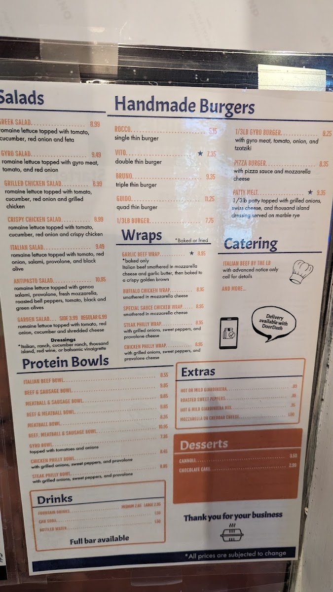 Guests can expect items like the Chicago Dog, Italian Beef Sandwich, and Philly Cheese Steak among the menu highlights—each bringing a taste of Midwestern and Chicago-style classics. These dishes pair naturally with the relaxed atmosphere, making them easy choices for lunch, a casual dinner, or a laid-back evening out with friends and family.